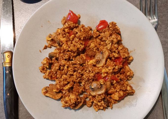 Tofu soyeux brouillé aux épices.
