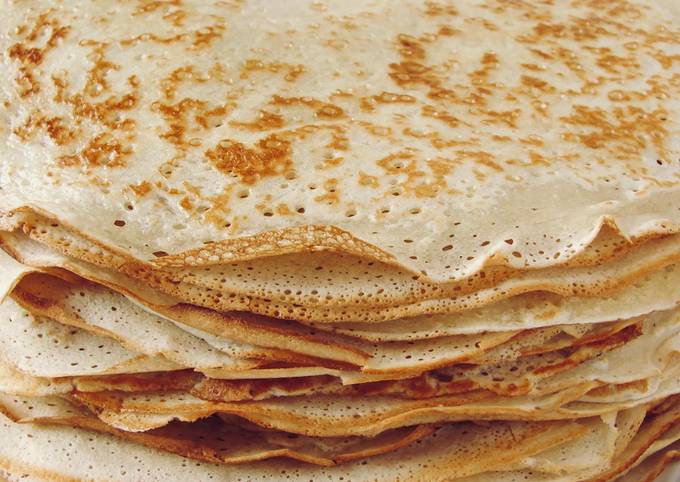 - Au fur et à mesure, réservez dans une assiette en couvrant avec une feuille de papier aluminium pour les garder chaudes et moelleuse. Vous devriez obtenir entre 15 et 20 crêpes avec une poêle de 20 cm de diamètre..