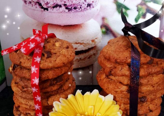 - Enfournez pour 10min ici j'ai enfourner 15 minutes. Déguster tiède ou froid 😋 Conserver les cookies dans une boîte hermétique dans un endroit à température ambiante😉.