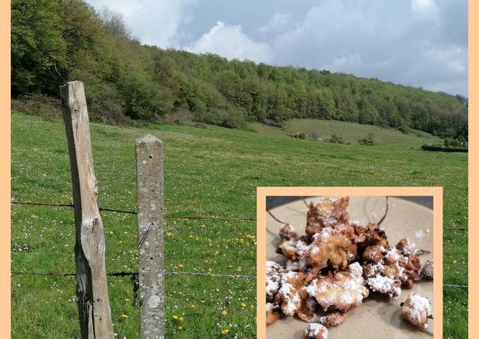 - Cuire dans l'huile de friture bien chaude et faire dorer, déposez sur un papier absorbant et saupoudrez aussitôt de sucre glace..